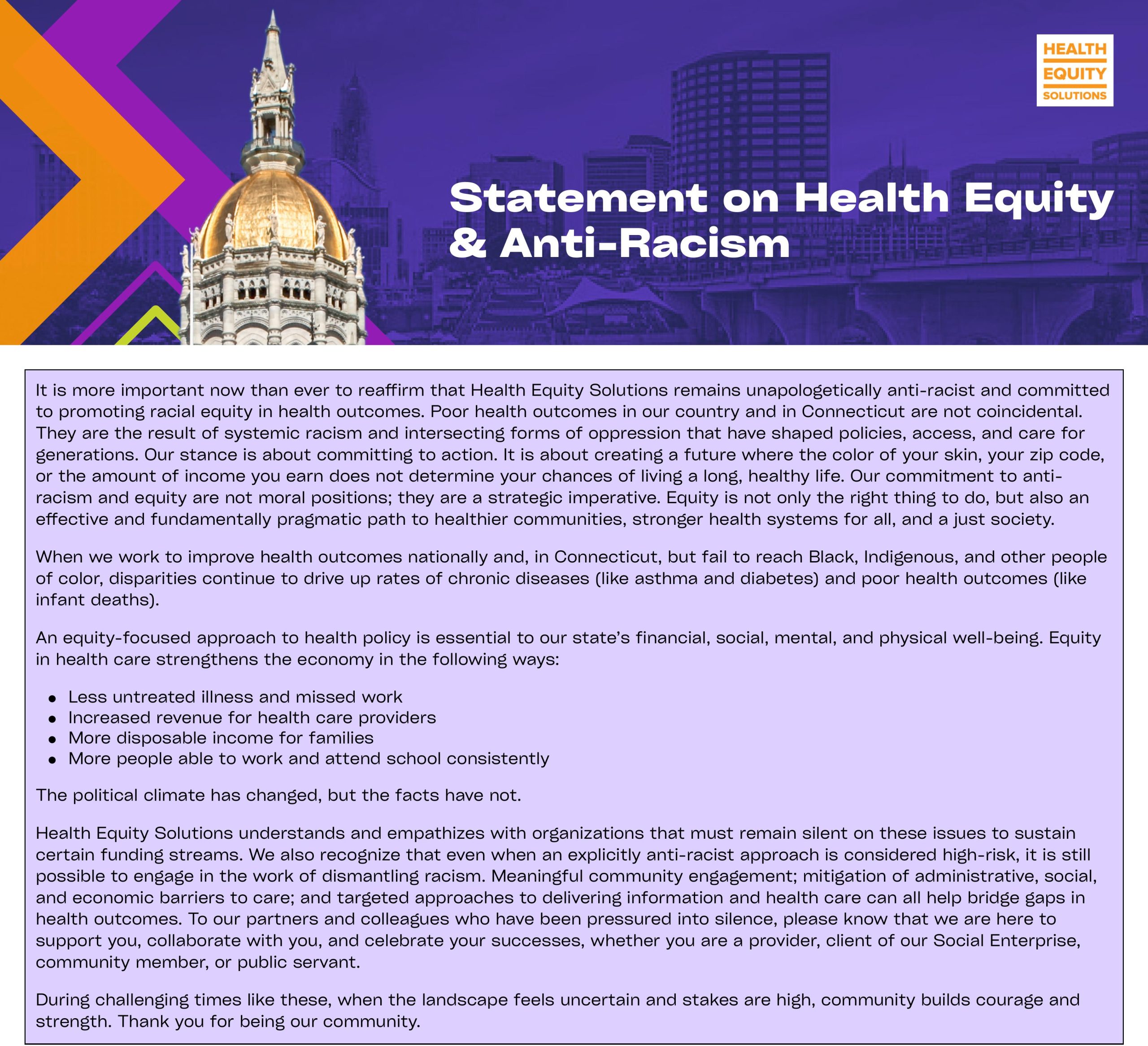 Join us for the HES Walk for Health Equity on Sunday, October 12th at Bushnell Park! This event is more than a walk – it’s a powerful statement that the current systems in place do not meet the needs of all people who live in Connecticut, particularly our Black and Brown communities that are disproportionately impacted by health disparities. Walk with us in this movement for justice.